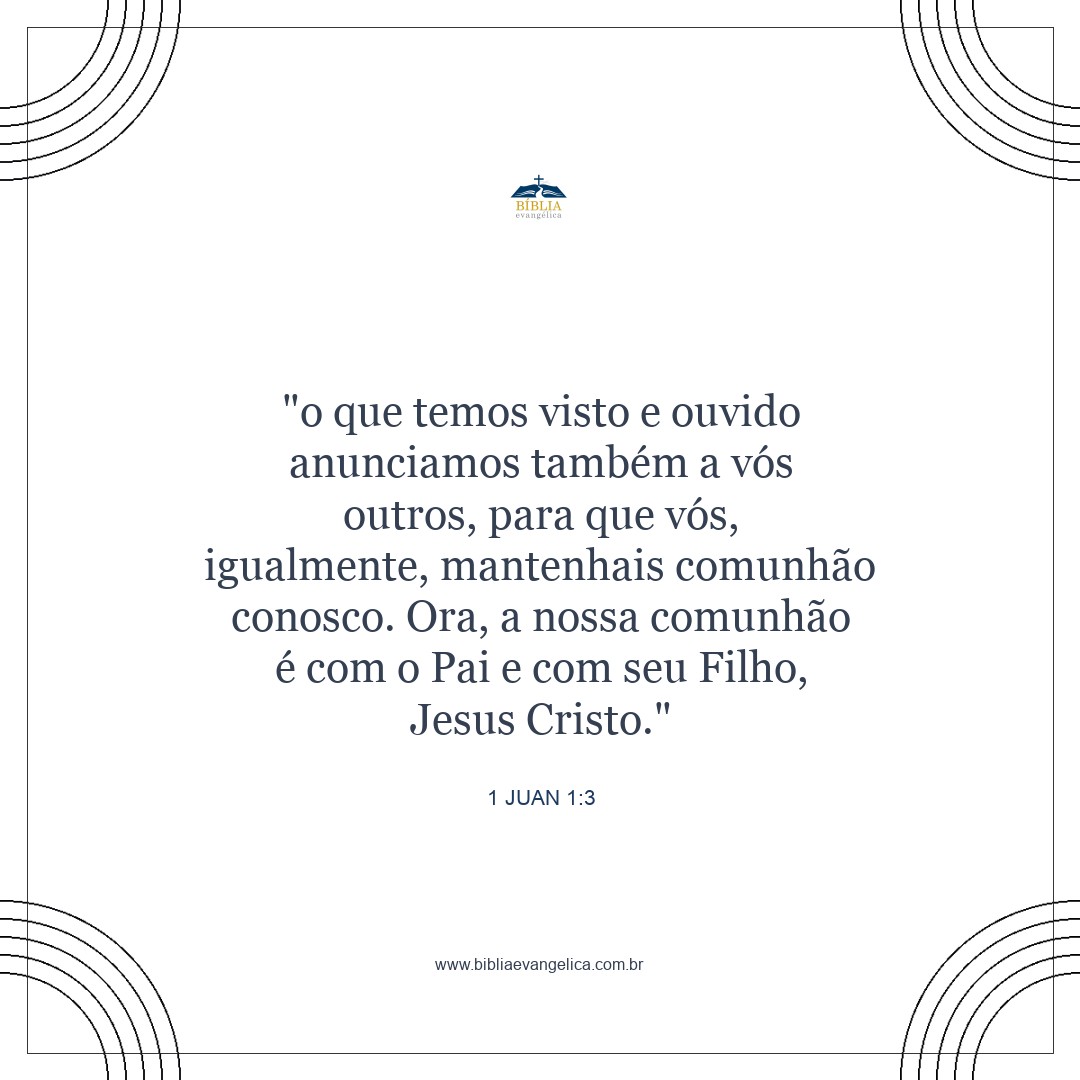 Nós lhes proclamamos o que vimos e ouvimos para que vocês também tenham comunhão conosco. Nossa comunhão é com o Pai e com seu Filho Jesus Cristo.