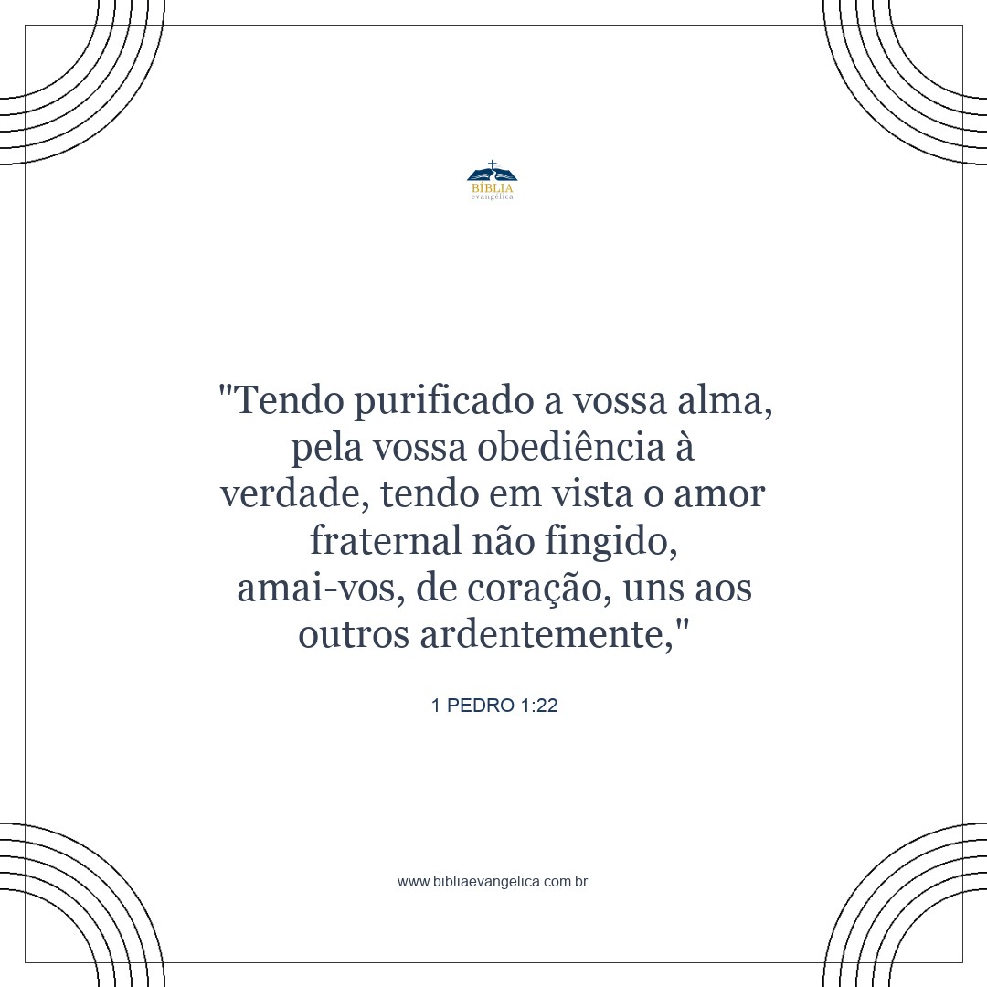 Agora que vocês purificaram as suas vidas pela obediência à verdade, visando ao amor fraternal e sincero, amem sinceramente uns aos outros e de todo o coração.