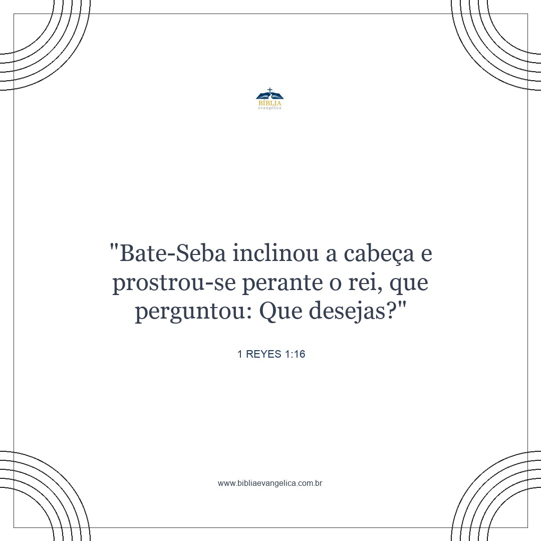 Bate-Seba ajoelhou-se e prostrou-se diante do rei. "O que você quer? ", o rei perguntou.