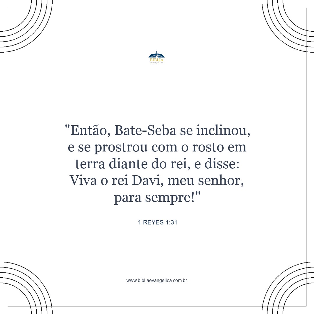 Então Bate-Seba prostrou-se, rosto em terra, e, ajoelhando-se diante do rei, disse: "Que o rei Davi, meu senhor, viva para sempre! "