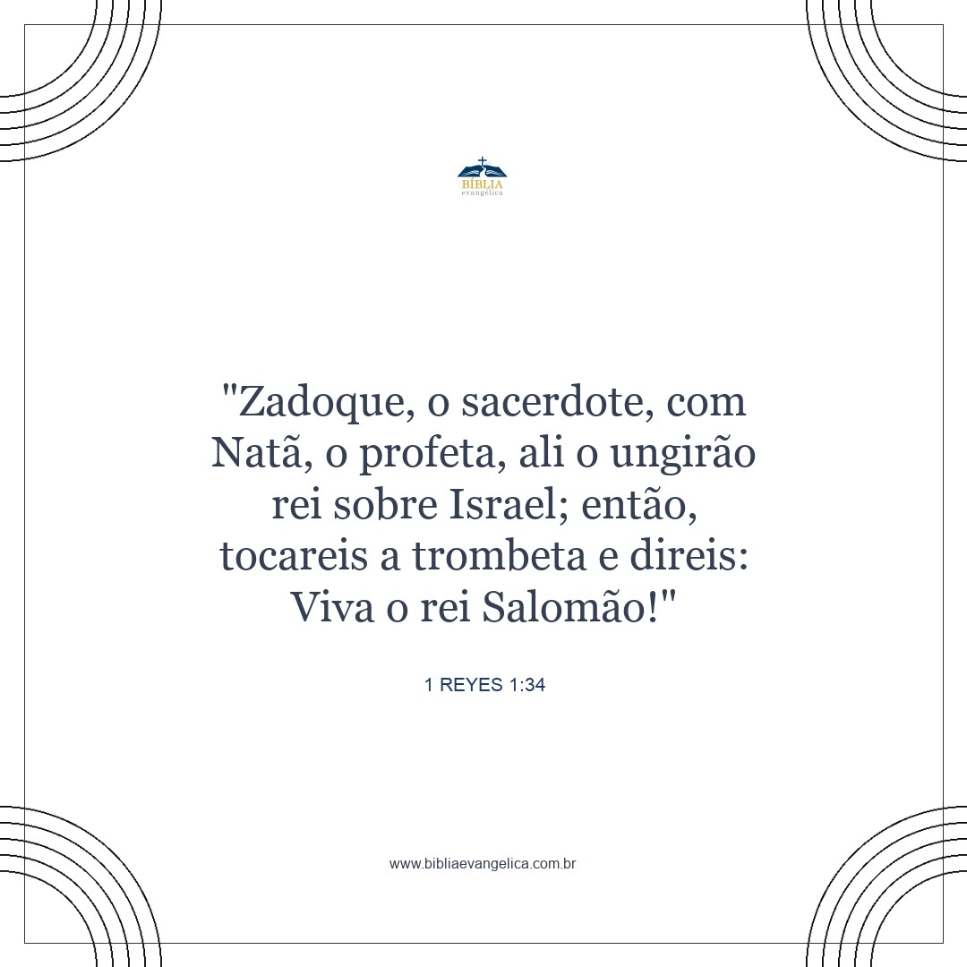 Ali o sacerdote Zadoque e o profeta Natã o ungirão rei sobre Israel. Então toquem a trombeta e gritem: Viva o rei Salomão!