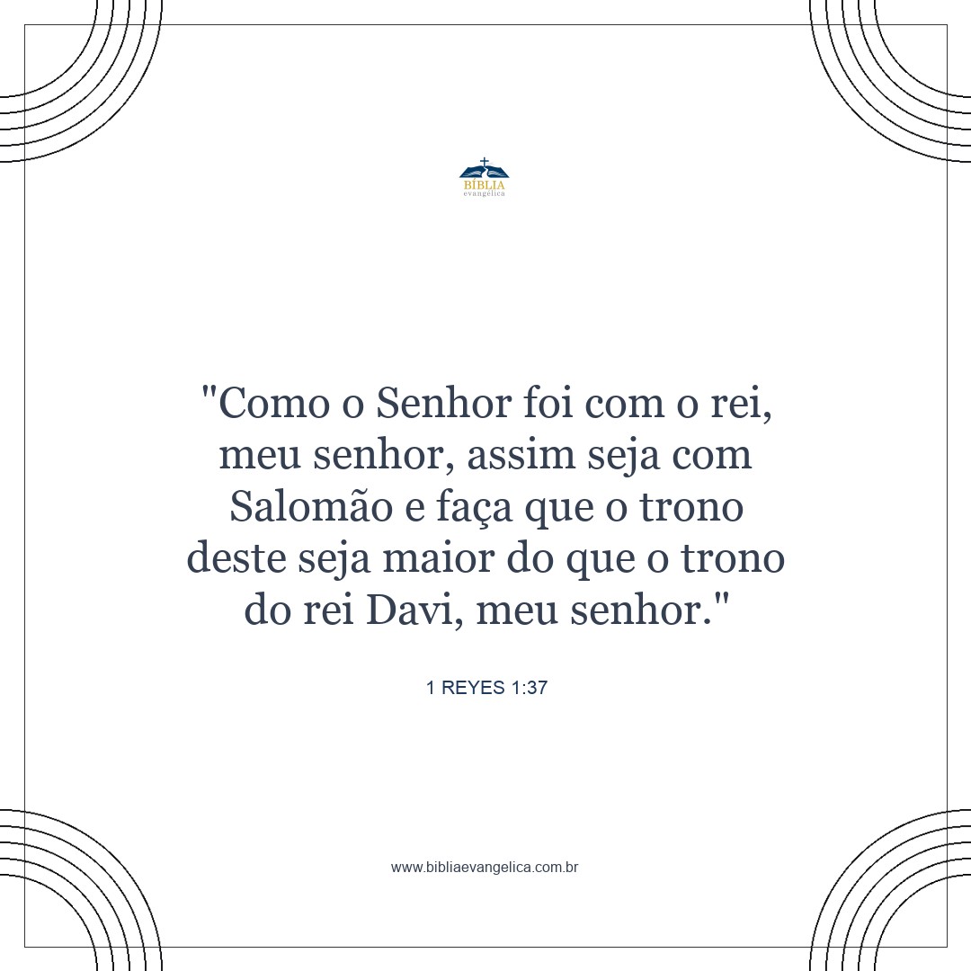 Assim como o Senhor esteve com o rei, meu senhor, também esteja ele com Salomão para que ele tenha um reinado ainda mais glorioso do que o meu senhor, o rei Davi! "
