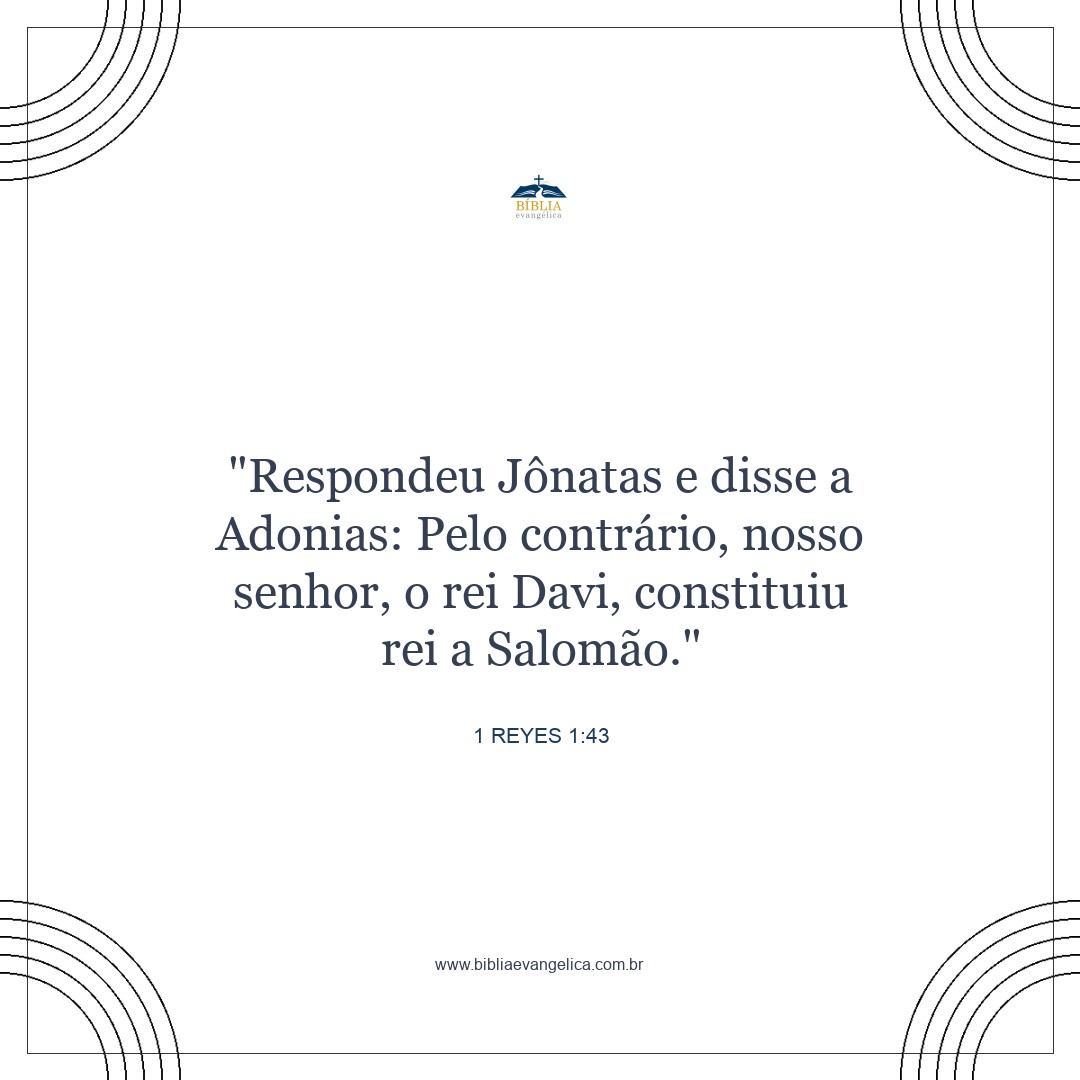 "De modo algum", respondeu Jônatas a Adonias. "Davi, o nosso rei e senhor, constituiu rei a Salomão.
