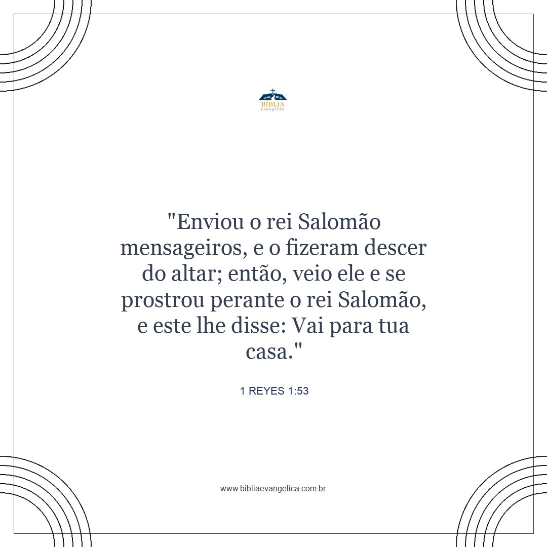 Então o rei enviou alguns soldados, e eles o fizeram descer do altar. E Adonias veio e se curvou solenemente perante o rei Salomão, que lhe disse: "Vá para casa".