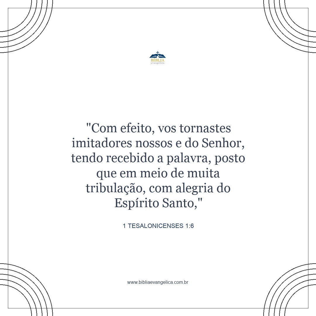 De fato, vocês se tornaram nossos imitadores e do Senhor; apesar de muito sofrimento, receberam a palavra com alegria que vem do Espírito Santo.