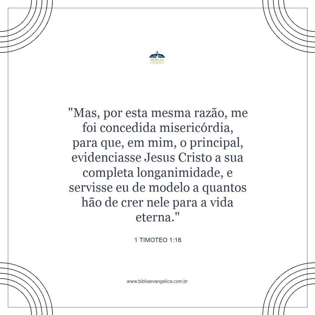 Mas, por isso mesmo alcancei misericórdia, para que em mim, o pior dos pecadores, Cristo Jesus demonstrasse toda a grandeza da sua paciência, usando-me como um exemplo para aqueles que nele haveriam de crer para a vida eterna.