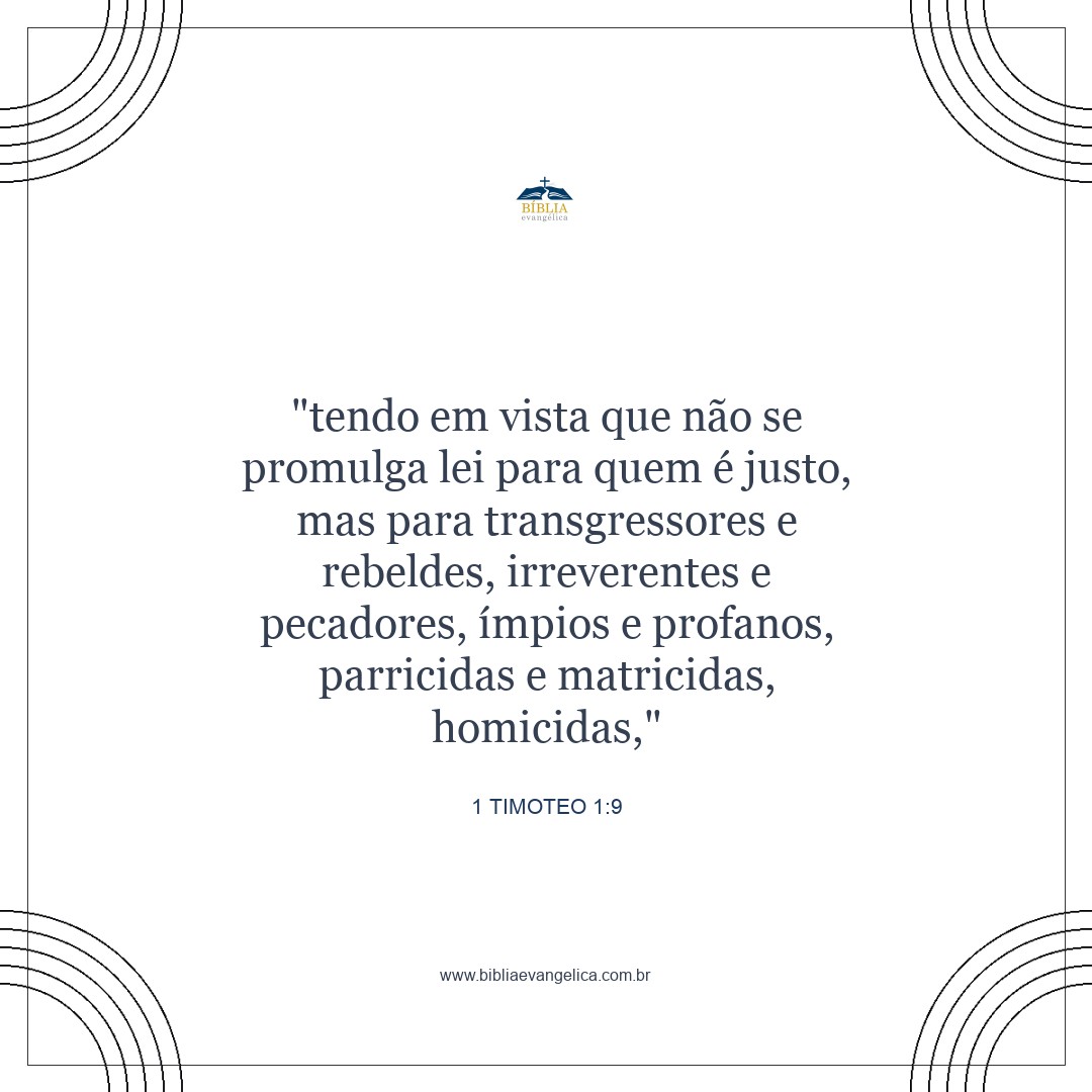 Também sabemos que ela não é feita para os justos, mas para os transgressores e insubordinados, para os ímpios e pecadores, para os profanos e irreverentes, para os que matam pai e mãe, para os homicidas,