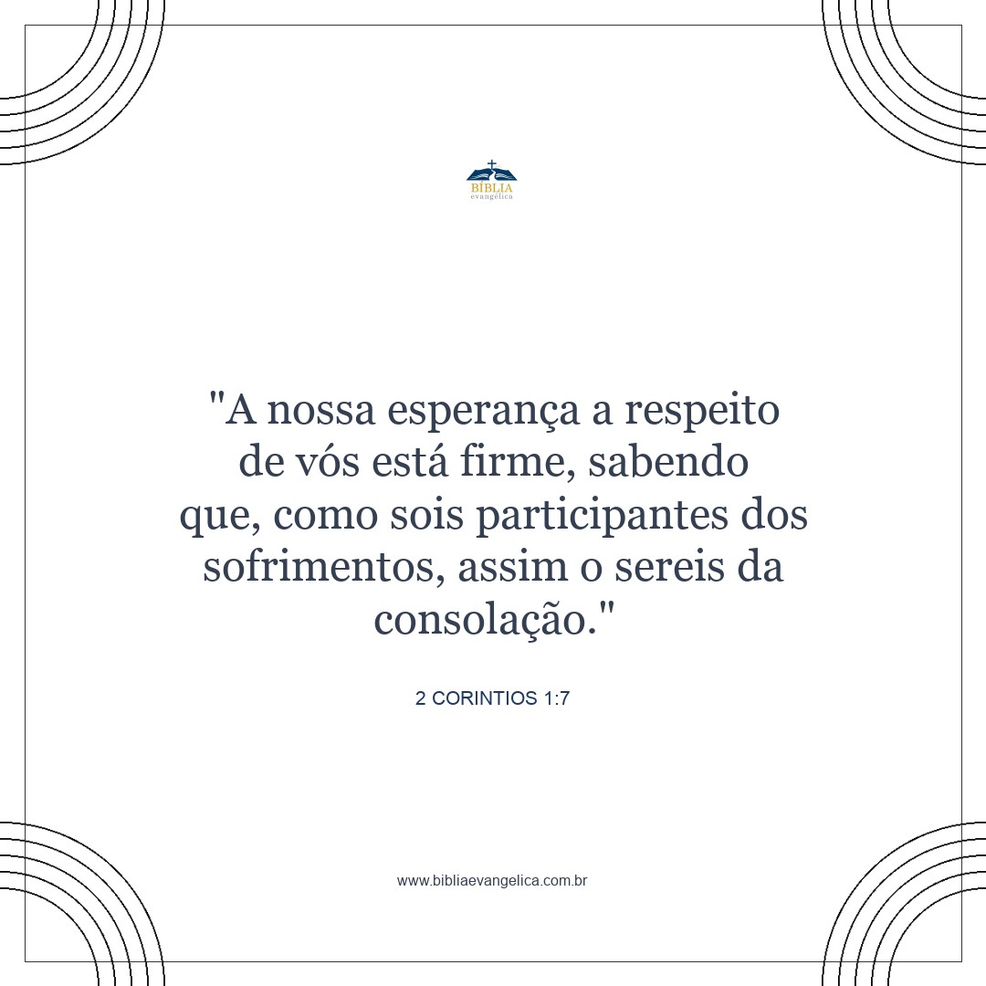 E a nossa esperança em relação a vocês está firme, porque sabemos que, da mesma forma como vocês participam dos nossos sofrimentos, participam também da nossa consolação.