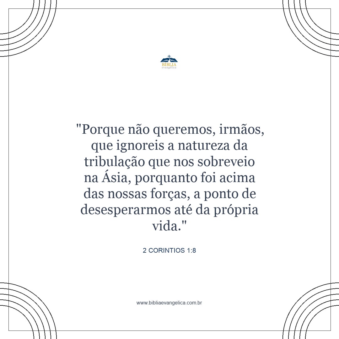 Irmãos, não queremos que vocês desconheçam as tribulações que sofremos na província da Ásia, as quais foram muito além da nossa capacidade de suportar, a ponto de perdermos a esperança da própria vida.