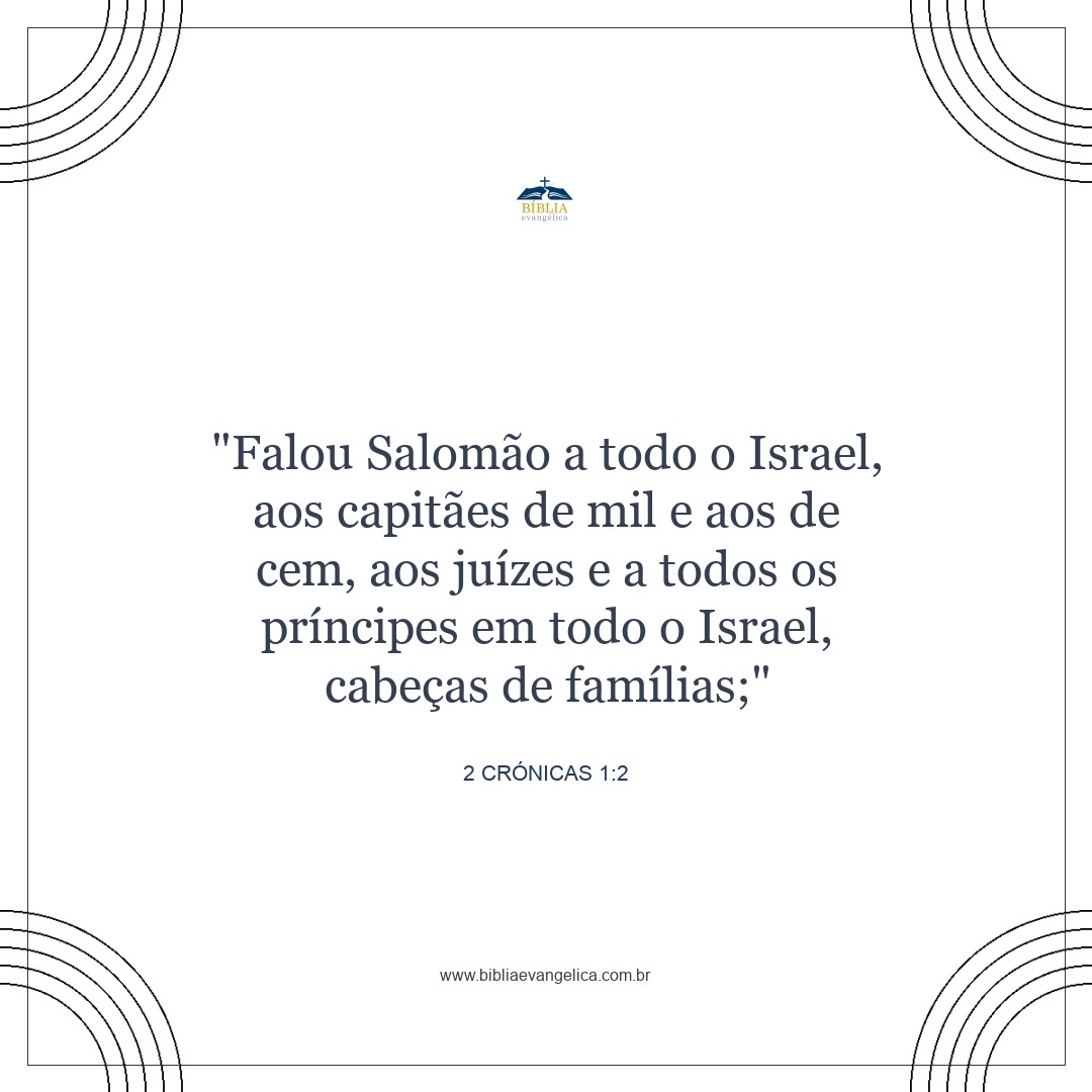 Salomão reuniu todo o Israel: os líderes de mil e de cem, os juízes, todos os líderes de Israel e os chefes de famílias.