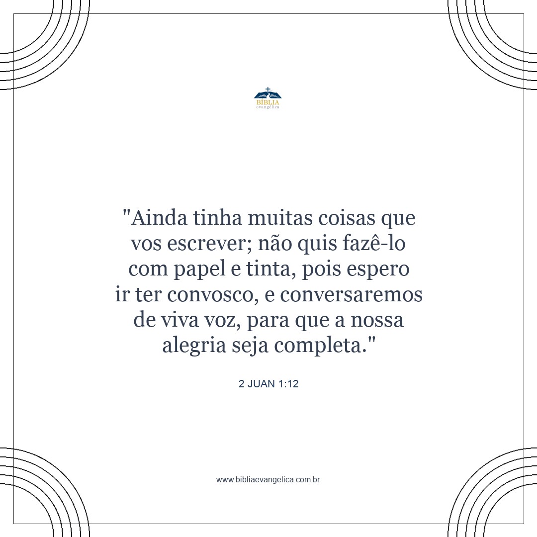 Tenho muito que lhes escrever, mas não é meu propósito fazê-lo com papel e tinta. Em vez disso, espero visitá-los e falar com vocês face a face, para que a nossa alegria seja completa.