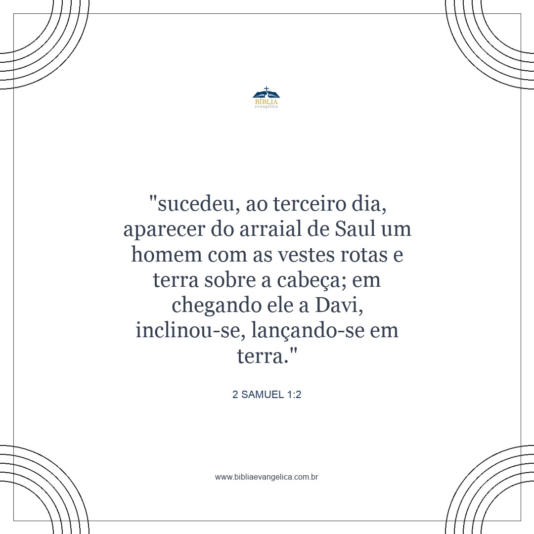 quando, no terceiro dia, chegou um homem que vinha do acampamento de Saul, com as roupas rasgadas e terra na cabeça. Ao aproximar-se de Davi, prostrou-se em terra, em sinal de respeito.