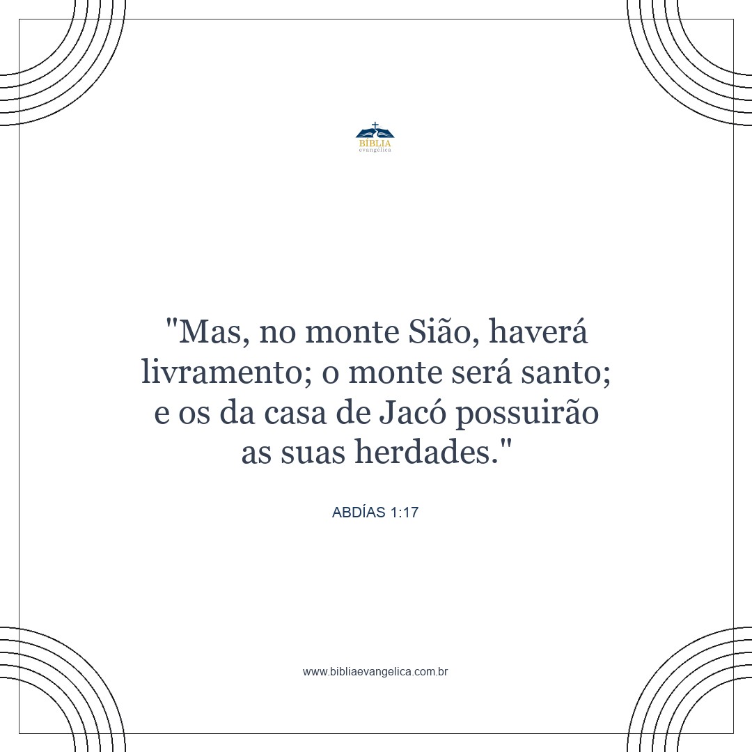 Mas no monte Sião estarão os que escaparam; ele será santo e a descendência de Jacó possuirá a sua herança.