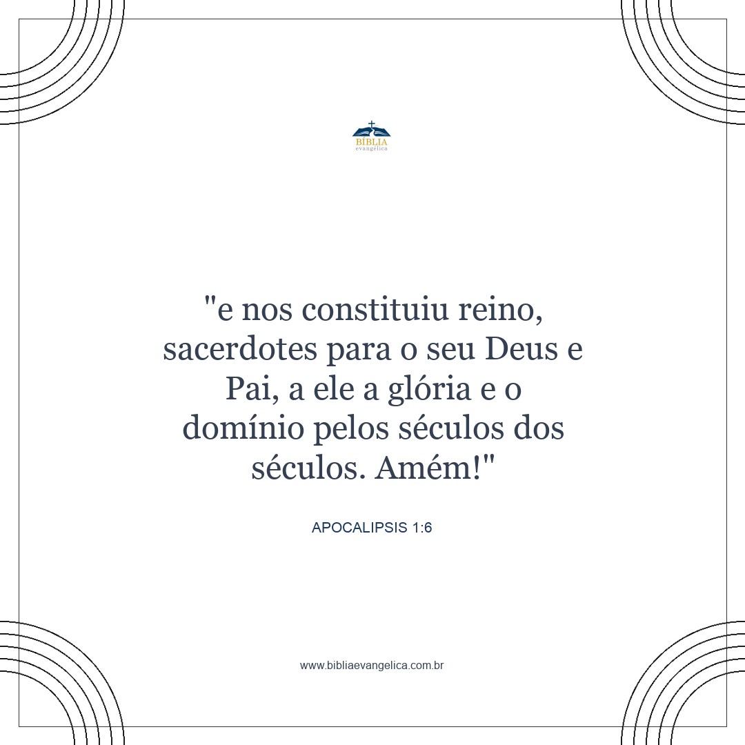 e nos constituiu reino e sacerdotes para servir a seu Deus e Pai. A ele sejam glória e poder para todo o sempre! Amém.