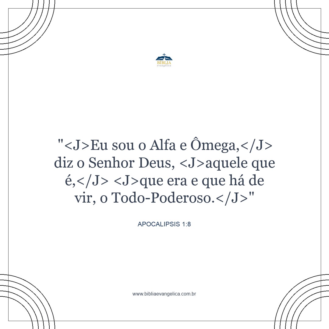 "Eu sou o Alfa e o Ômega", diz o Senhor Deus, "o que é, o que era e o que há de vir, o Todo-poderoso".