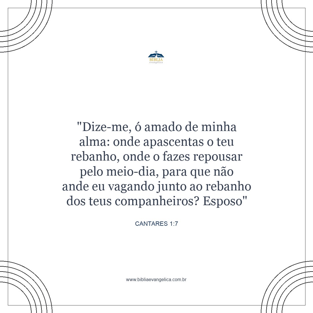 Conte-me, você a quem amo, onde faz pastar o seu rebanho e onde faz as suas ovelhas descansarem ao meio-dia? Se eu não o souber, serei como uma mulher coberta com véu junto aos rebanhos dos seus amigos.