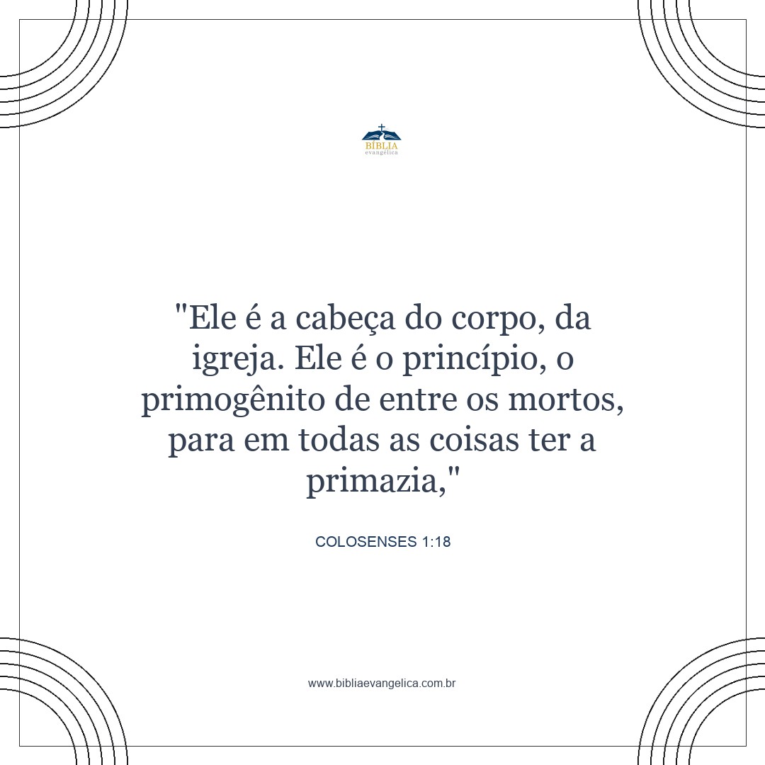 Ele é a cabeça do corpo, que é a igreja; é o princípio e o primogênito dentre os mortos, para que em tudo tenha a supremacia.