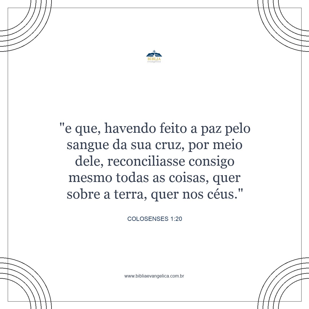 e por meio dele reconciliasse consigo todas as coisas, tanto as que estão na terra quanto as que estão no céu, estabelecendo a paz pelo seu sangue derramado na cruz.
