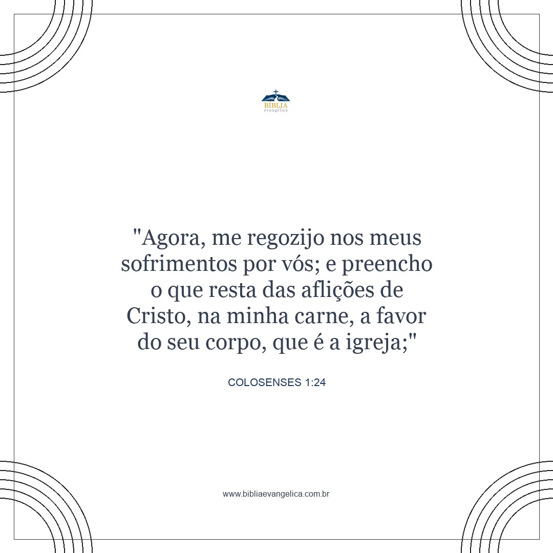 Agora me alegro em meus sofrimentos por vocês, e completo no meu corpo o que resta das aflições de Cristo, em favor do seu corpo, que é a igreja.