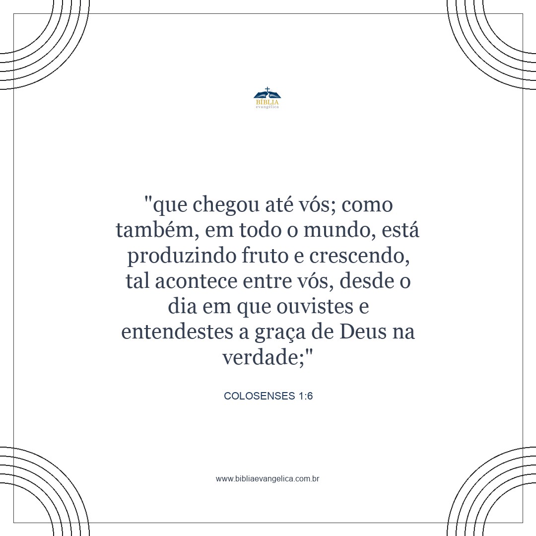 que chegou até vocês. Por todo o mundo este evangelho vai frutificando e crescendo, como também ocorre entre vocês, desde o dia em que o ouviram e entenderam a graça de Deus em toda a sua verdade.