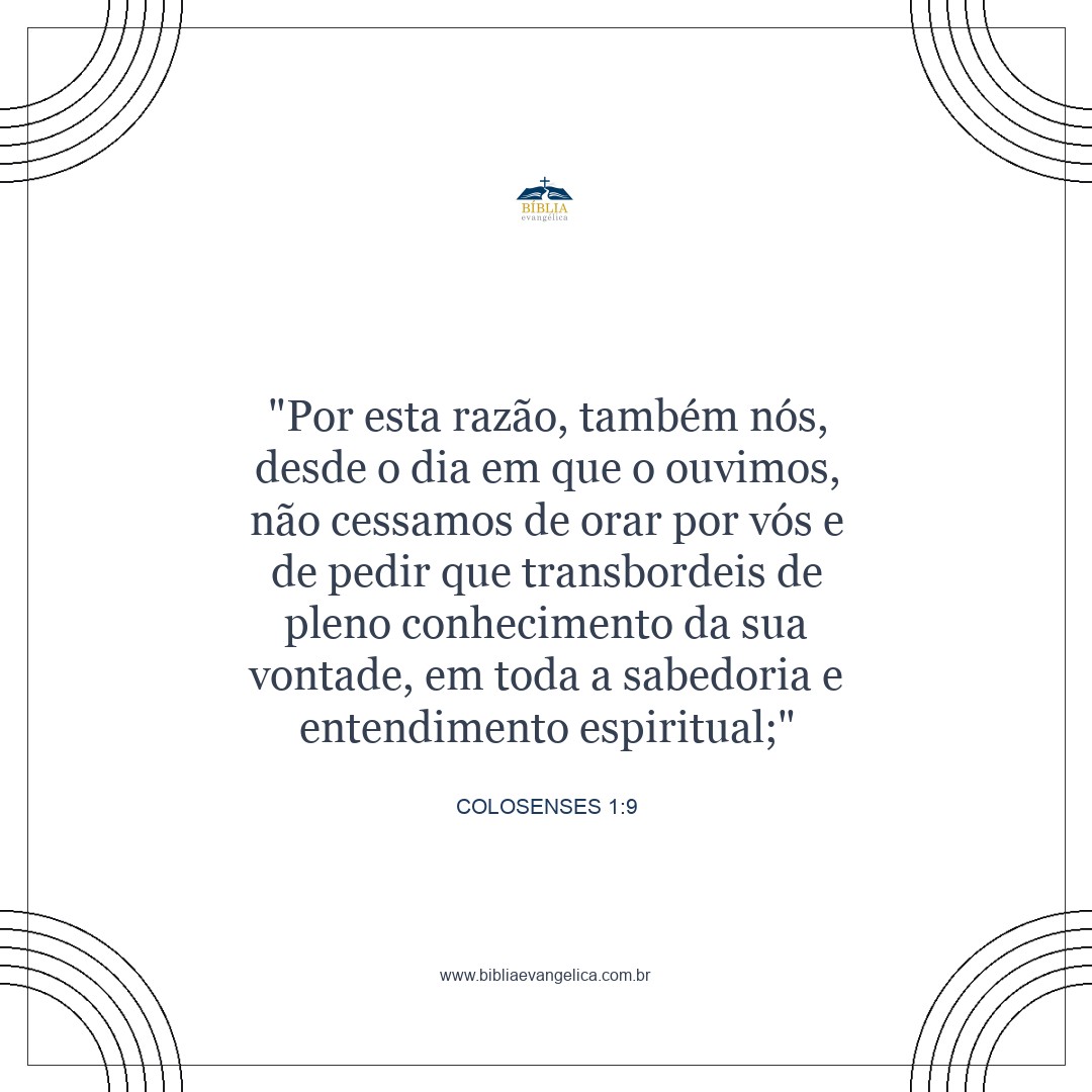 Por essa razão, desde o dia em que o ouvimos, não deixamos de orar por vocês e de pedir que sejam cheios do pleno conhecimento da vontade de Deus, com toda a sabedoria e entendimento espiritual.