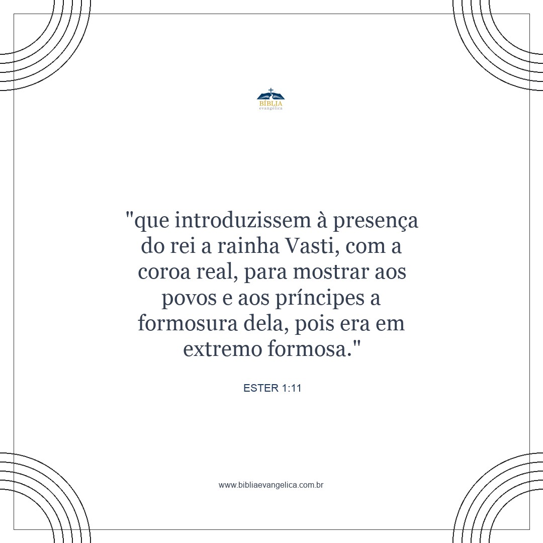 trouxessem à sua presença a rainha Vasti, usando a coroa real, para mostrar sua beleza aos súditos e aos nobres, pois ela era muito bonita.
