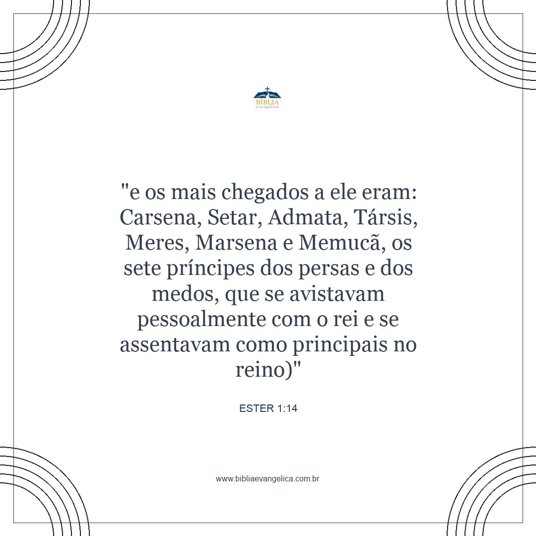 e eram muito amigos do rei: Carsena, Setar, Adamata, Társis, Meres, Marsena e Memucã; os sete nobres da Pérsia e da Média que tinham acesso direto ao rei e eram os mais importantes do reino.