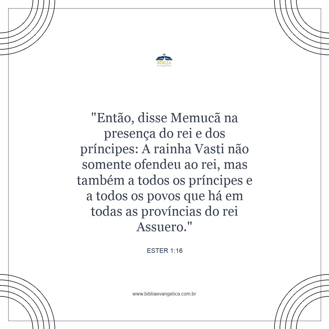 Então Memucã respondeu na presença do rei e dos nobres: "A rainha Vasti não ofendeu somente ao rei, mas também a todos os nobres e os povos de todas as províncias do rei Xerxes,