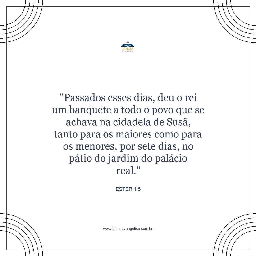 Terminados esses dias, no jardim interno do palácio, o rei deu um banquete de sete dias para todo o povo que estava na cidadela de Susã, do mais rico ao mais pobre.