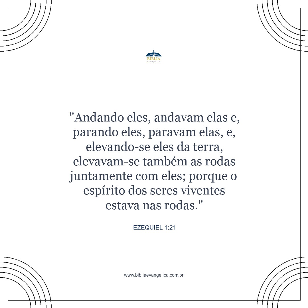 Quando os seres viventes se moviam, elas também se moviam; quando eles ficavam imóveis, elas também ficavam; e quando os seres viventes se elevavam do chão, as rodas também se elevavam com eles, porque o mesmo Espírito deles estava nelas.