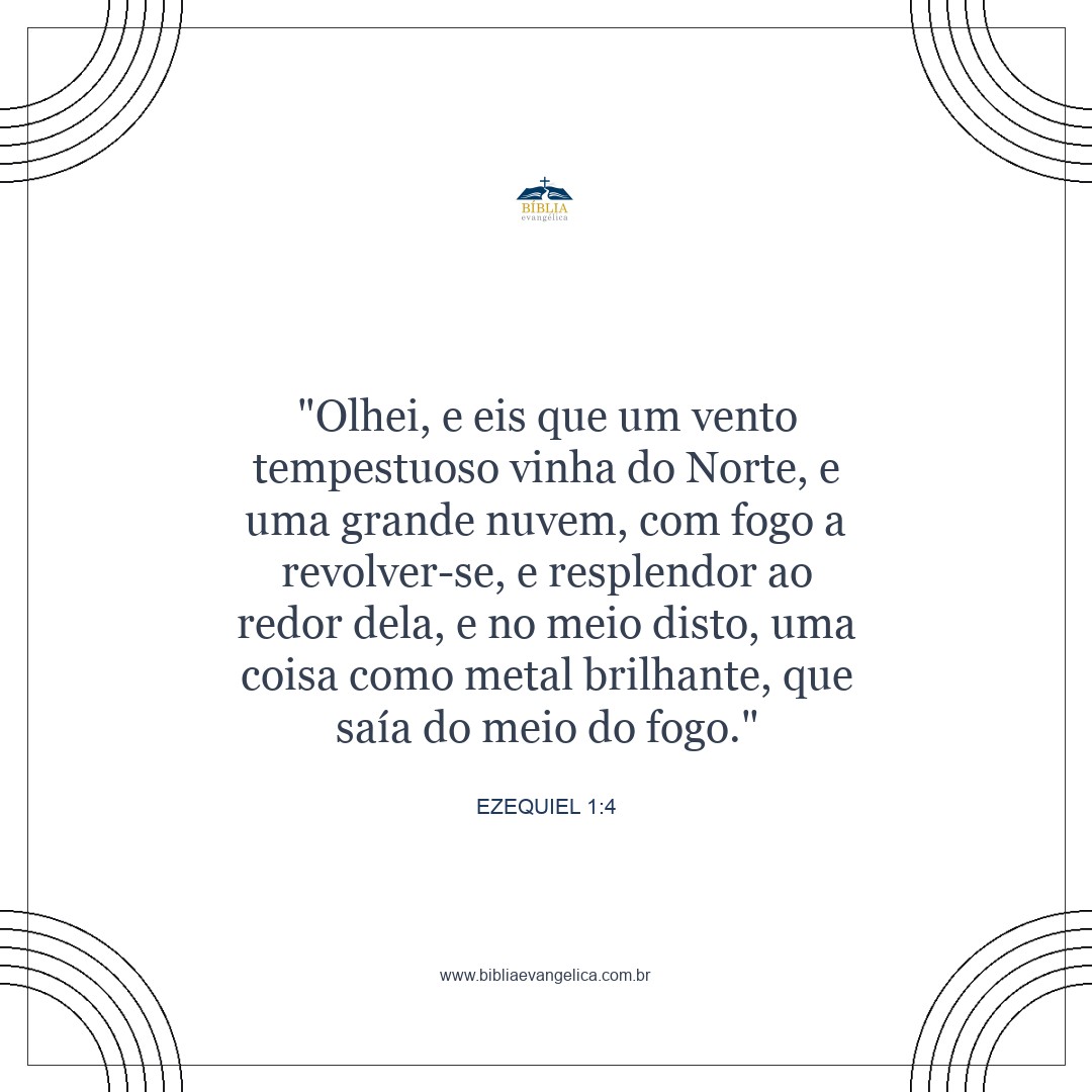 Olhei e vi uma tempestade que vinha do norte: uma nuvem imensa, com relâmpagos e faíscas, e cercada por uma luz brilhante. O centro do fogo parecia metal reluzente,
