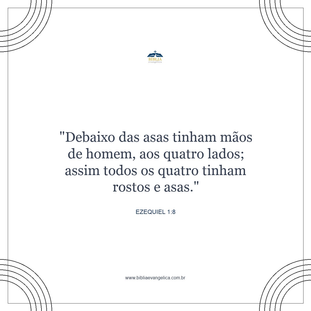 Debaixo de suas asas, nos quatro lados, tinham mãos humanas. Os quatro tinham rostos e asas,