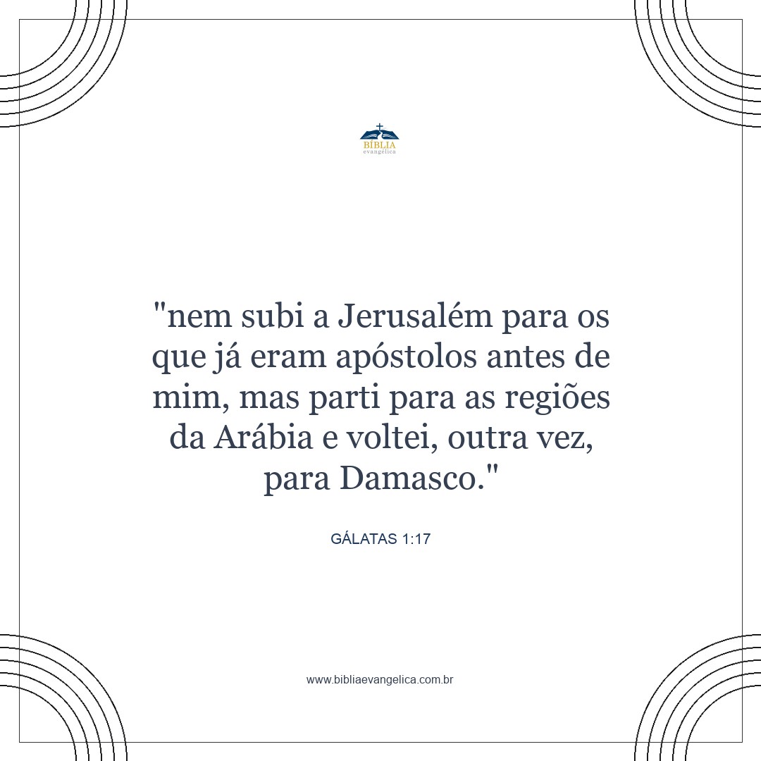 Tampouco subi a Jerusalém para ver os que já eram apóstolos antes de mim, mas de imediato parti para a Arábia, e tornei a voltar a Damasco.