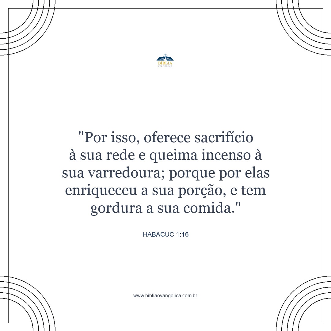 E por essa razão eles oferecem sacrifício às suas redes e queimam incenso em sua honra, pois, graças às suas redes, vivem em grande conforto e desfrutam iguarias.