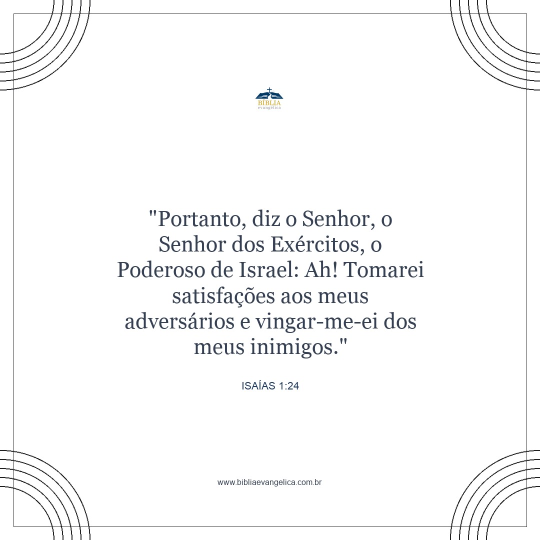 Por isso o Soberano, o Senhor dos Exércitos, o Poderoso de Israel, anuncia: "Ah! Derramarei minha ira sobre os meus adversários e me vingarei dos meus inimigos.