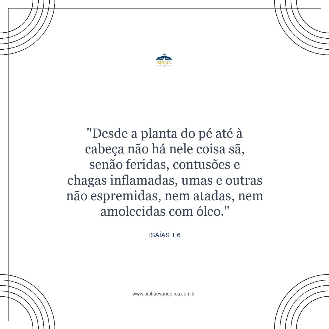 Da sola do pé ao alto da cabeça não há nada são; somente machucados, vergões e ferimentos abertos, que não foram limpos nem enfaixados nem tratados com azeite.
