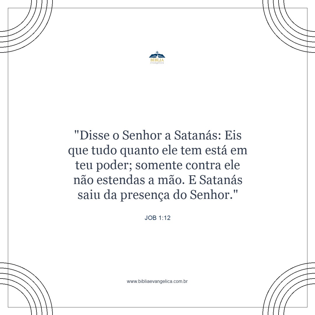 O Senhor disse a Satanás: "Pois bem, tudo o que ele possui está nas suas mãos; apenas não encoste um dedo nele". Então Satanás saiu da presença do Senhor.