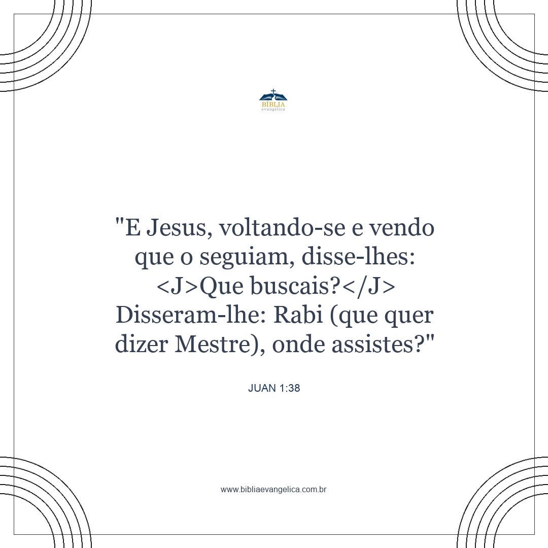 Voltando-se e vendo Jesus que os dois o seguiam, perguntou-lhes: "O que vocês querem? " Eles disseram: "Rabi", ( que significa Mestre ), "onde estás hospedado? "
