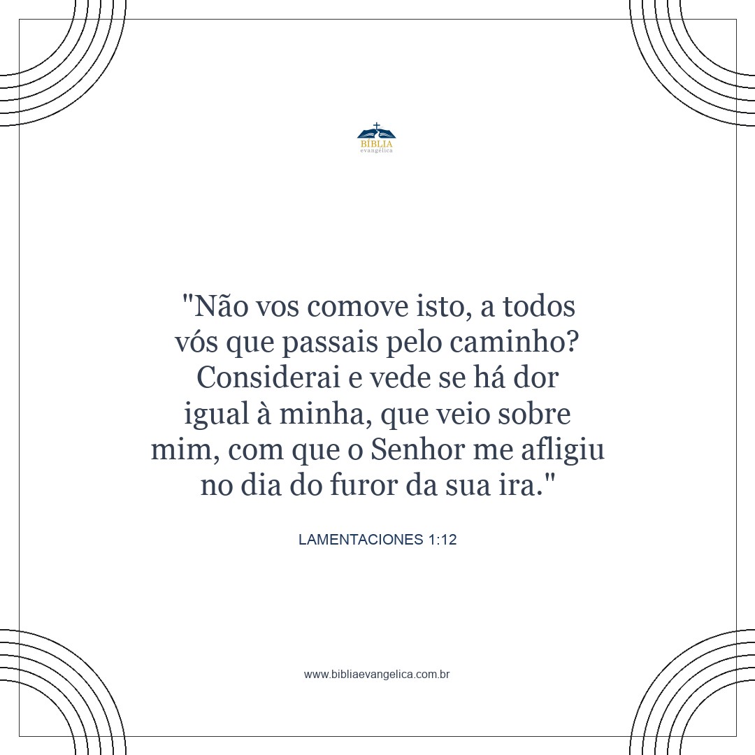 "Vocês não se comovem, todos vocês que passam por aqui? Olhem ao redor e vejam se há sofrimento maior do que o que me foi imposto e que o Senhor trouxe sobre mim no dia em que se acendeu a sua ira.