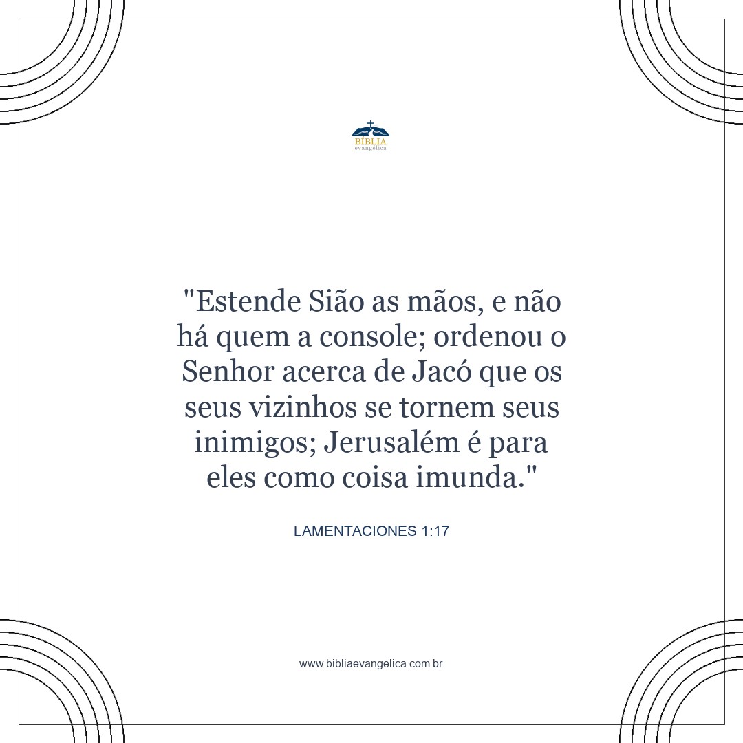 Sião estende as mãos suplicantes mas não há quem a console. O Senhor decretou que os vizinhos de Jacó se tornem seus adversários; Jerusalém tornou-se coisa imunda entre eles.