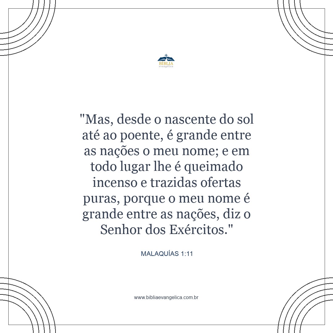 Pois do oriente ao ocidente grande é o meu nome entre as nações. Em toda parte incenso e ofertas puras são trazidos ao meu nome, porque grande é o meu nome entre as nações", diz o Senhor dos Exércitos.