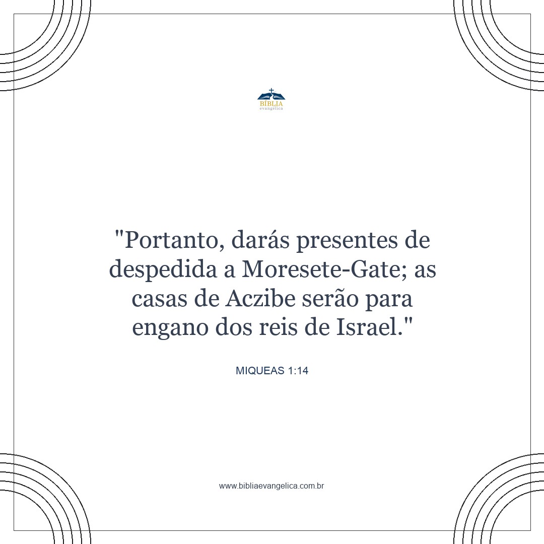 Por isso vocês darão presentes de despedida a Moresete-Gate. A cidade de Aczibe se revelará enganosa aos reis de Israel.