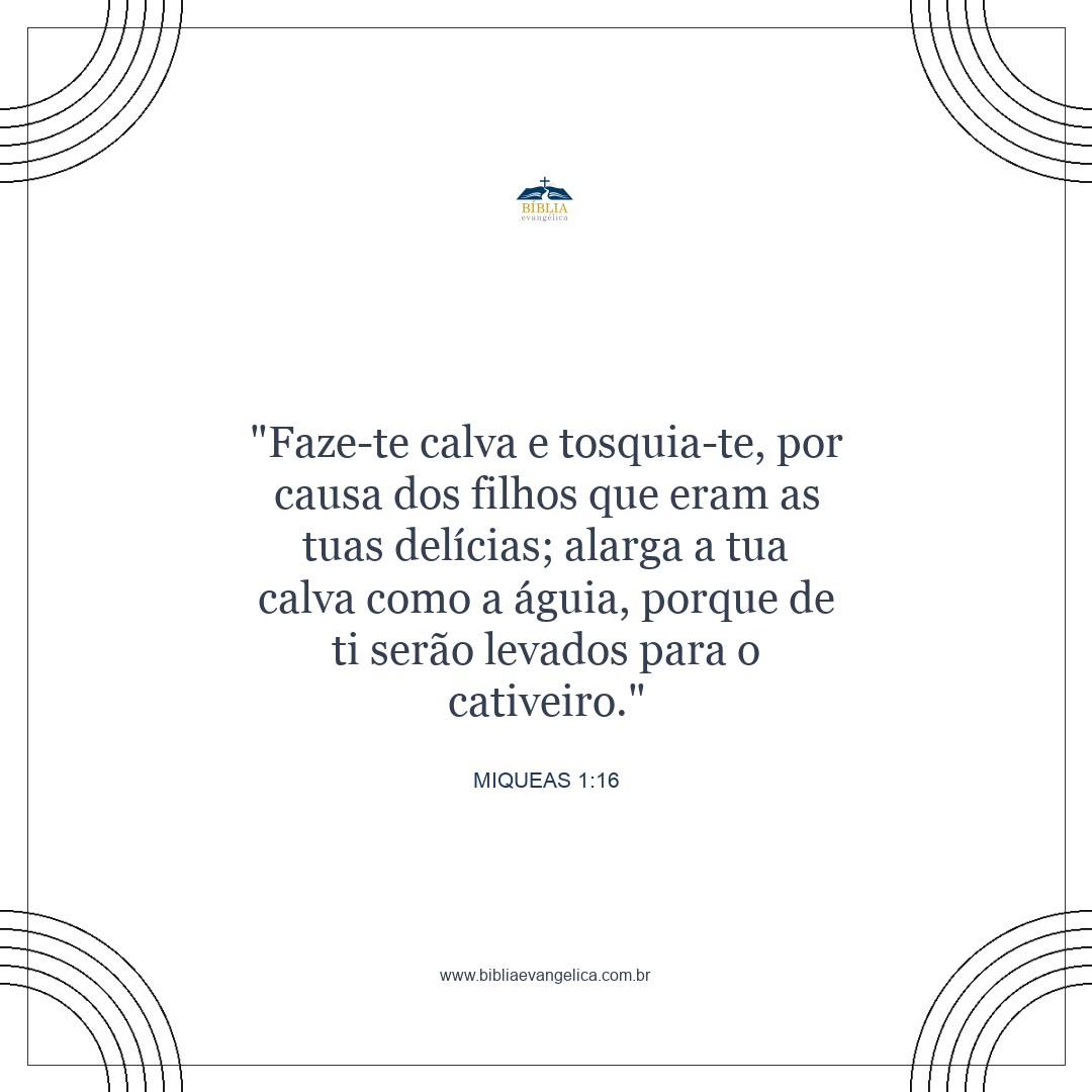 Rapem as suas cabeças em pranto por causa dos filhos nos quais vocês se tanto alegram; fiquem calvos como a águia, pois eles serão levados de vocês para o exílio.