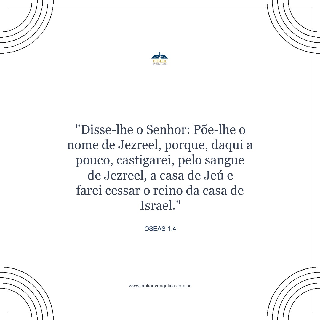 Então o Senhor disse a Oséias: "Dê a ele o nome de Jezreel, porque logo castigarei a dinastia de Jeú por causa do massacre ocorrido em Jezreel, e darei fim ao reino de Israel.