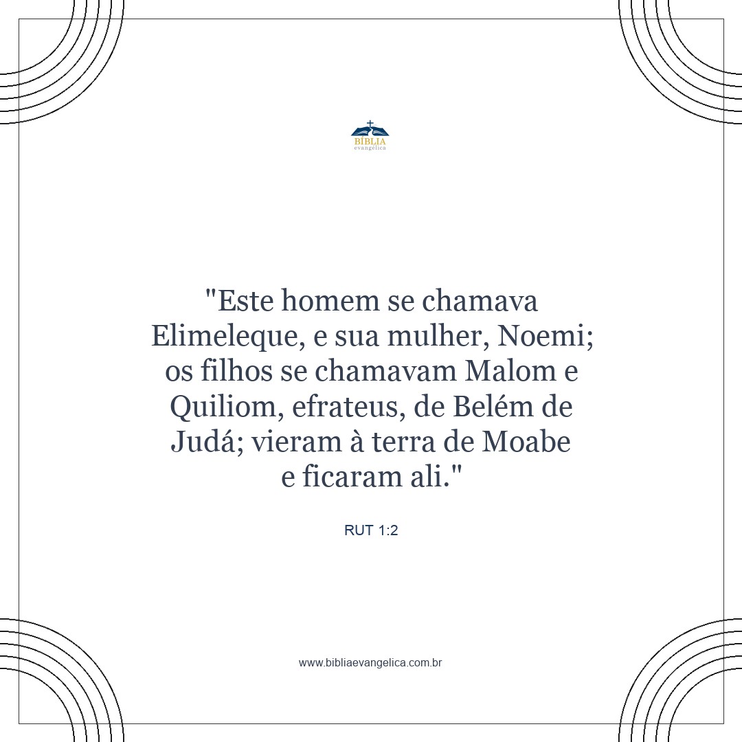 O homem chamava-se Elimeleque, sua mulher Noemi e seus dois filhos Malom e Quiliom. Eram efrateus de Belém de Judá. Chegaram a Moabe, e lá ficaram.