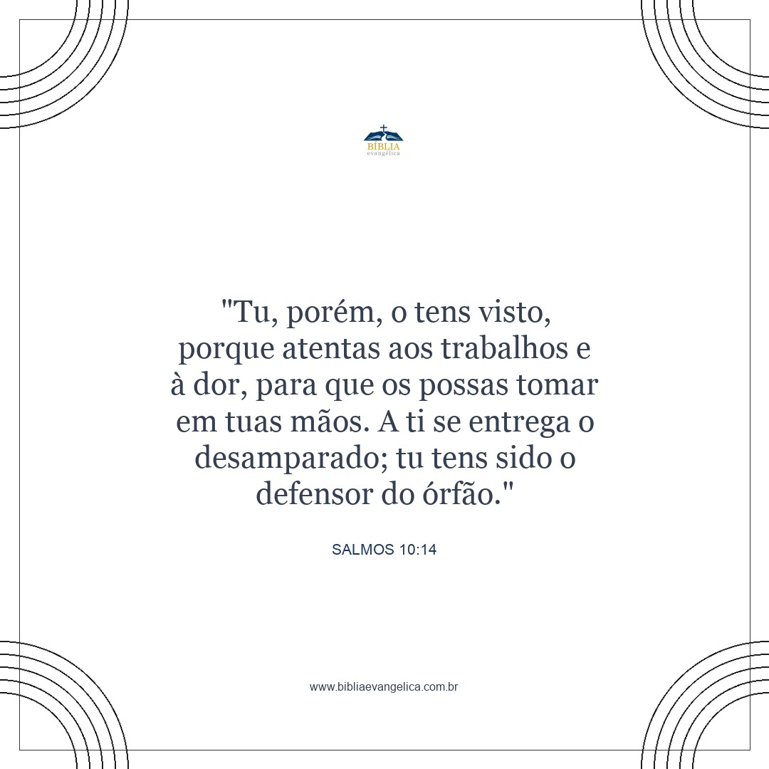 Mas tu enxergas o sofrimento e a dor; observa-os para tomá-los em tuas mãos. A vítima deles entrega-se a ti; tu és o protetor do órfão.