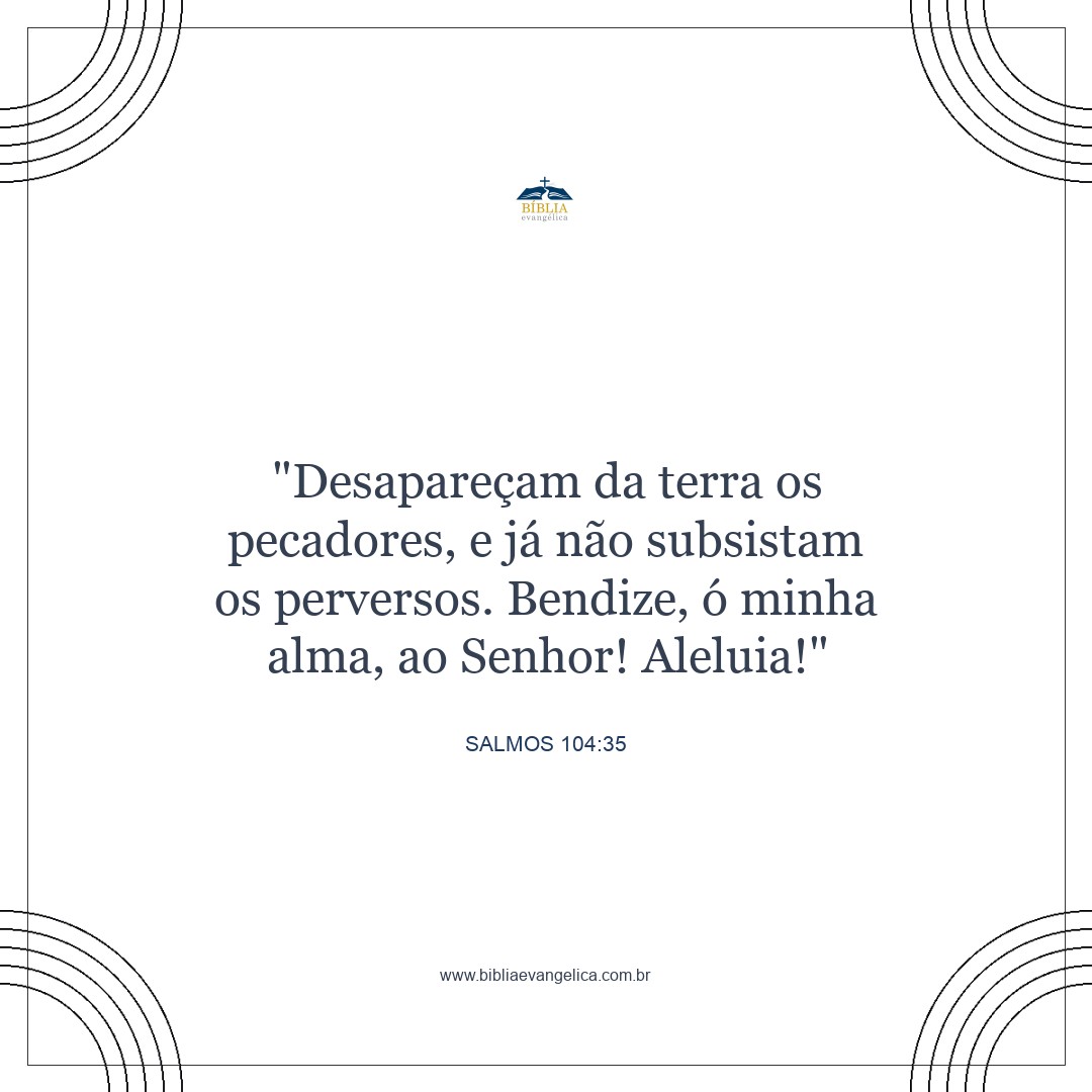Sejam os pecadores eliminados da terra e deixem de existir os ímpios. Bendiga ao Senhor a minha alma! Aleluia!