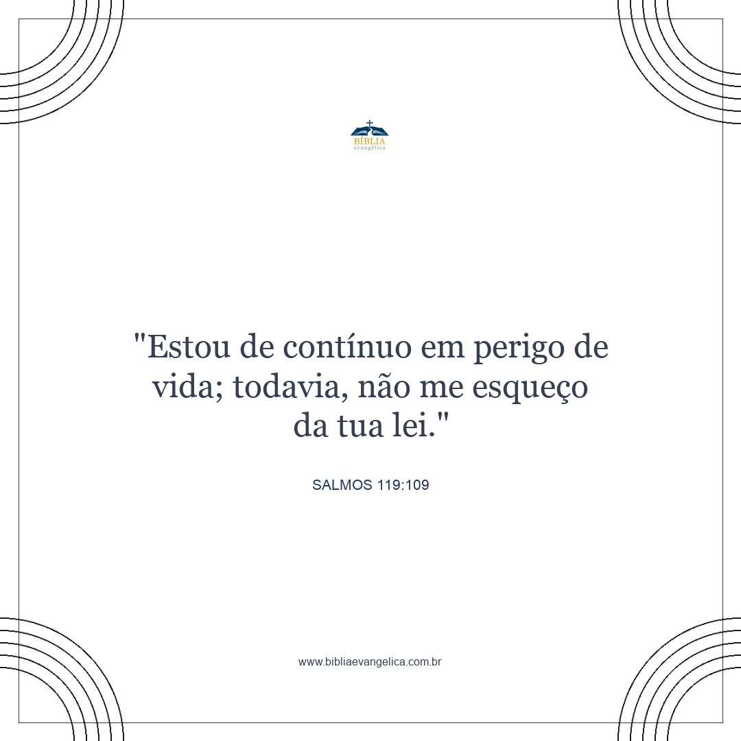 A minha vida está sempre em perigo, mas não me esqueço da tua lei.