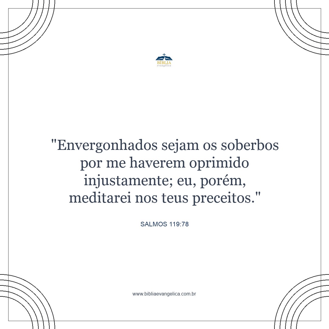 Sejam humilhados os arrogantes, pois prejudicaram-me sem motivo; mas eu meditarei nos teus preceitos.