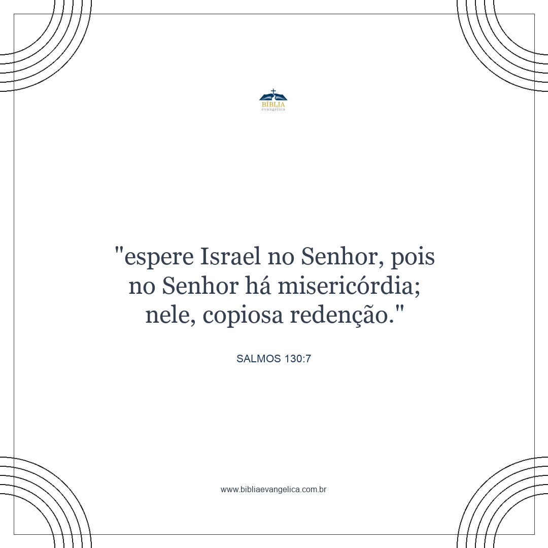 Ponha a sua esperança no Senhor, ó Israel, pois no Senhor há amor leal e plena redenção.